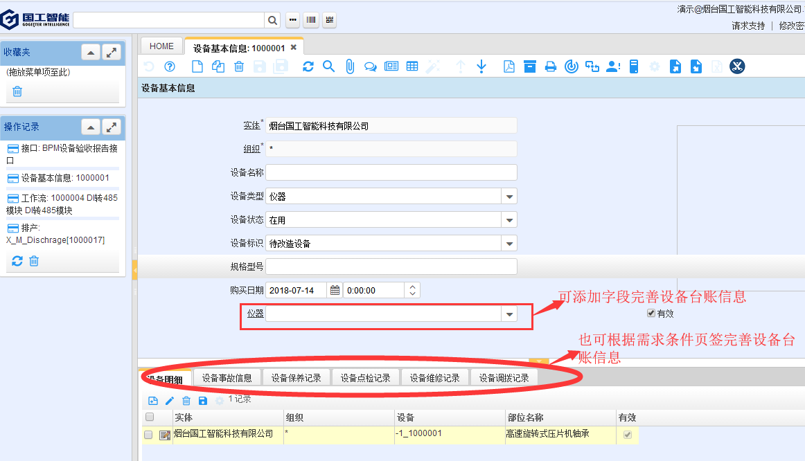 1.設(shè)備臺(tái)帳的登記