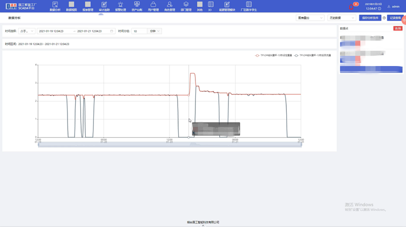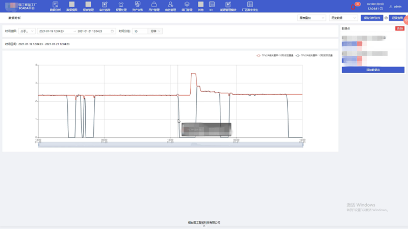 國工智能工業(yè)物聯(lián)網平臺具有數(shù)據(jù)監(jiān)視以及數(shù)據(jù)趨勢分析的基本功能,我們可以通過數(shù)據(jù)趨勢分析功能對矢重秤歷史數(shù)據(jù)以及實時數(shù)據(jù)進行查看、追溯。