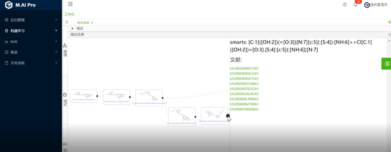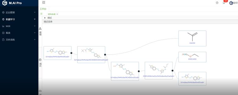 如果近似性搜索庫中沒有近似項,那么系統會調用逆向合成機器人系統逆向推導所需化合物合成過程以及合成途徑中所引用的相關文獻,會自動生成多條合成路徑來擴展研發人員的研發思路通過相應的路線和可參考的資料,企業可以進行人為干預的合成路線實驗設計和修正,同時人工智能算法會自動學習企業常用的化合物和合成習慣,從而可以將整個研發團隊的經驗進行數字化積累。