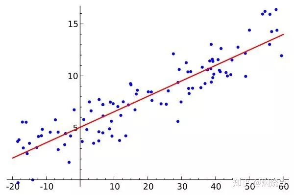 滿足上述三個假設條件說明回歸模型是理想的。殘差是樣本值(藍點)與回歸直線(紅線)上的值(又稱回歸擬合值)之間的差,紅線可由數據大腦擬合回歸算法得出,具體見下圖。殘差檢驗即檢查經過回歸擬合后得到的殘差是否滿足上述三個條件。如果違背了上述其中之一的假設條件,就不是經典的線性回歸模型,這樣的模型用普通最小二乘法來估計往往失效,最后擬合出來的模型往往是有誤的,預測的效果也大打折扣。
