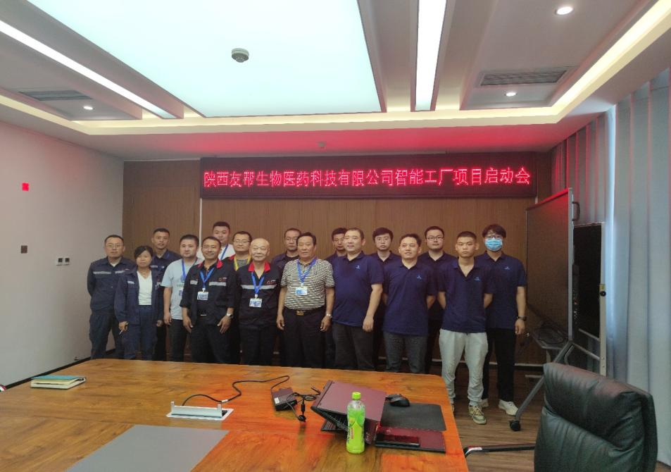 8月4日,陜西友幫生物醫藥科技有限公司(以下簡稱“友幫生物”)召開首個智能工廠的項目啟動會,由友幫生物和國工智能組建的項目團隊全體成員參加了此次啟動會。雙方在會上對項目團隊人員配置及分工、項目實施規劃等內容進行了對接與溝通,確保項目的順利完成。