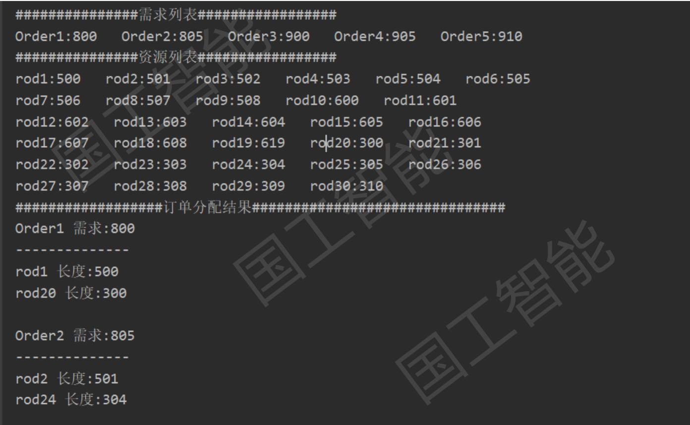 根據(jù)客戶的這個(gè)業(yè)務(wù)場景和解決思路,公司研發(fā)人員部建立了一個(gè)業(yè)務(wù)Demo。創(chuàng)建 5個(gè)需求,30個(gè)硅棒作為現(xiàn)有倉庫存儲(chǔ),需求的長度必須滿足,可超長,但超長的長度不可超過10,超長部分越少越好,可拼接,但是不能超過3個(gè),拼接的個(gè)數(shù)越少越好。(在這里為了演示的可閱讀性,假設(shè)硅棒的原料相同,硅棒的截面規(guī)格也相同,只有長度不同,長度單位為毫米,下文在描述時(shí)對(duì)單位做了省略。)