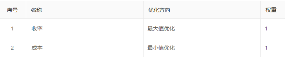 首先,打開國工智能數(shù)據(jù)大腦平臺,進入實驗優(yōu)化界面,對實驗信息進行配置。使用的指標分別是收率和成本,要求收率最大化及成本最小化,并可分配指標的權(quán)重,如圖2。