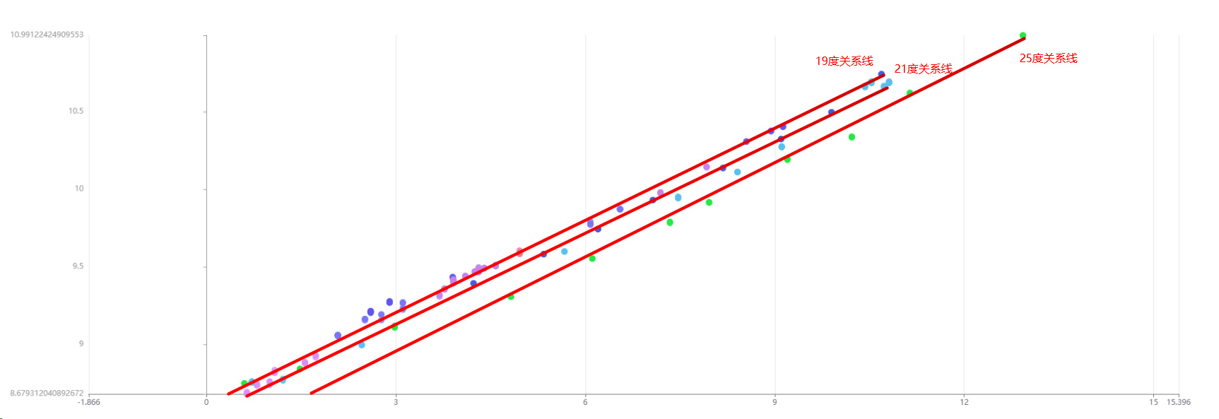 將次氯酸鈉中有效氯含量和游離堿含量多個批次分別進行采集數(shù)據(jù),有效氯含量不受溫度影響,直接用線性回歸做模型訓練即可,游離堿會受溫度影響,我們?nèi)×藥讉€溫度下的堿的數(shù)據(jù)找出關(guān)系溫度關(guān)系,增加了溫度補償,溫度變化大的情況下也能給出游離堿準確結(jié)果。