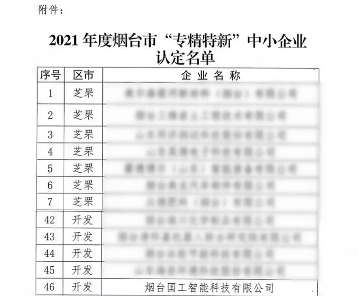熱烈祝賀國(guó)工智能榮獲煙臺(tái)市“專精特新”中小企業(yè)榮譽(yù)稱號(hào)